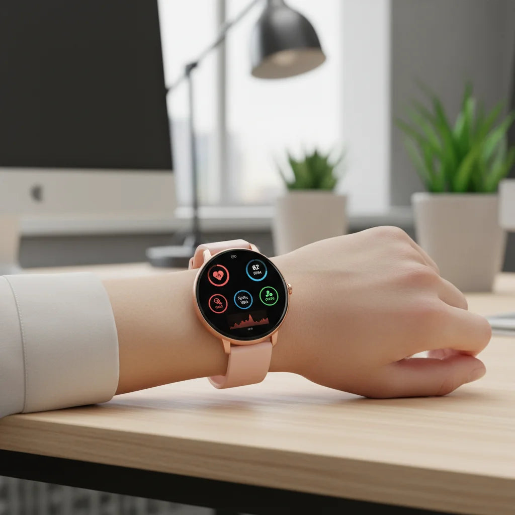 Un compagnon discret pour votre bien-être. Surveillez vos métriques essentielles, avec une maîtrise intuitive.
