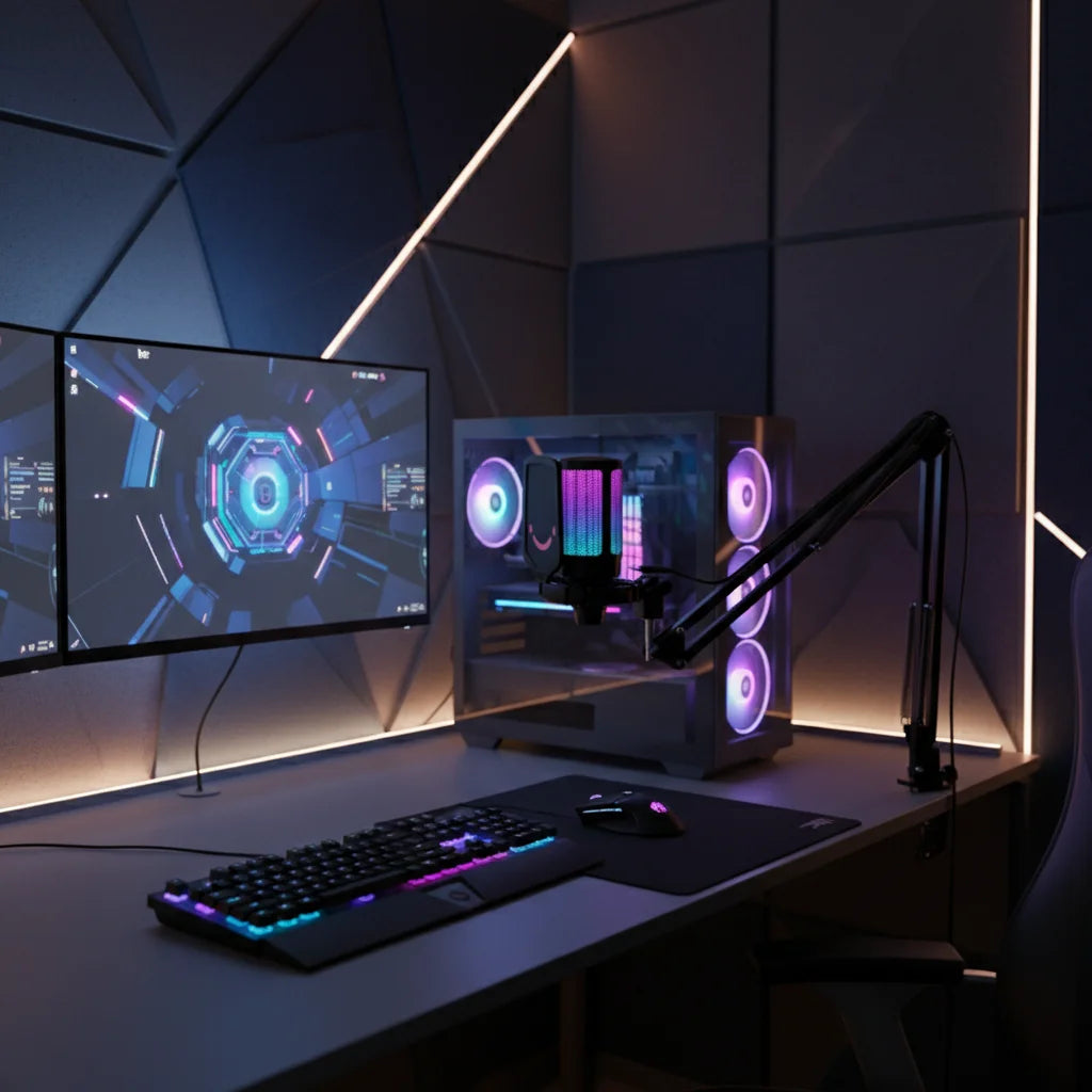 Oui, l'éclairage RGB est entièrement personnalisable pour s'adapter à votre setup et votre humeur. Ajoutez une touche dynamique et inspirante à votre espace de création, et faites briller votre personnalité tout en diffusant votre contenu. Créez un environnement qui vous motive.